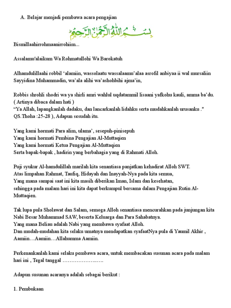 Web Unduh mp3 baru Contoh Teks Mc Singkat Contoh Teks Pembawa Acara Pengajian Yang Sederhana dan mudah dipahami Mas Dori 0413 PT4M13S 579 MB. Web Contoh Teks MC Pengajian Ibu-Ibu Pengajian ibu-ibu biasanya dilakukan secara rutin setiap seminggu atau sebulan sekali. Web 10 Contoh Teks Pembawa Acara Pengajian Terbaru Dan Lengkap Syahrulanam Com.