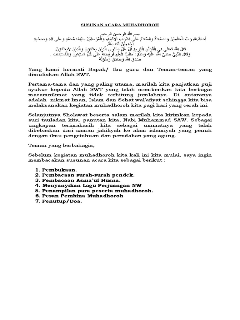 Contoh Kata Sambutan Ketua Panitia Acara Wisuda Informasi. Contoh Teks Mc Pengajian Bagi seluruh umat islam acara pengajian memang sering dilakukan. Contoh Teks Pidato Bahasa Arab untuk anak SD MI TPQ.