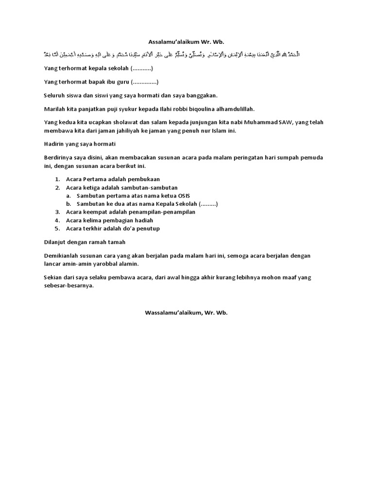 Yang terhormat bapak kepala sekolah. SUSUNAN ACARA UPACARA BENDERA SUMPAH PEMUDA SUSUNAN ACARA. Contoh Teks Pembawa Acara.