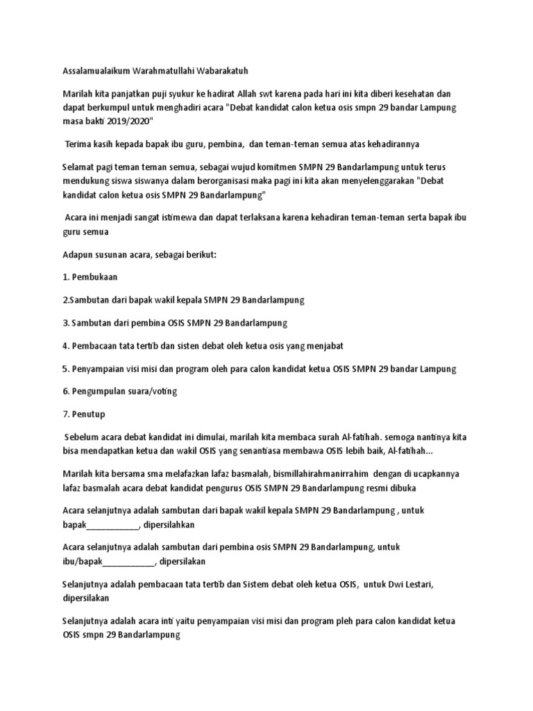 Naskah Pembawa Acara Mc Acara Pertemuan Wali Murid Dan Komite Sekolah Muda Mudi Condrowangsan