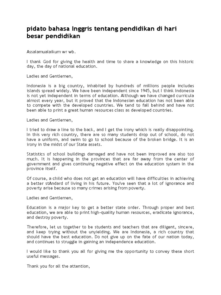 Pidato Inggris Singkat Tentang Pendidikan