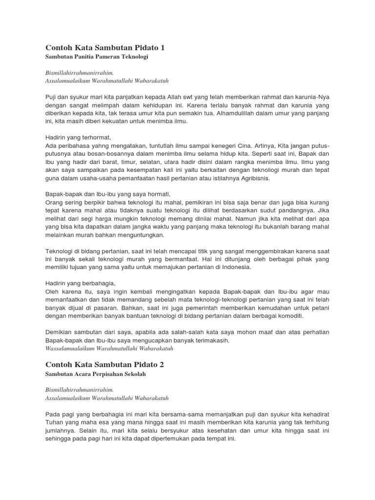 Contoh Kata Sambutan Pidato Lengkap