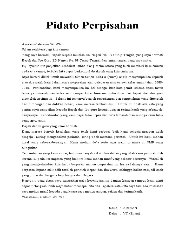 Contoh Pidato Perpisahan Untuk Kls 6 SD | PDF