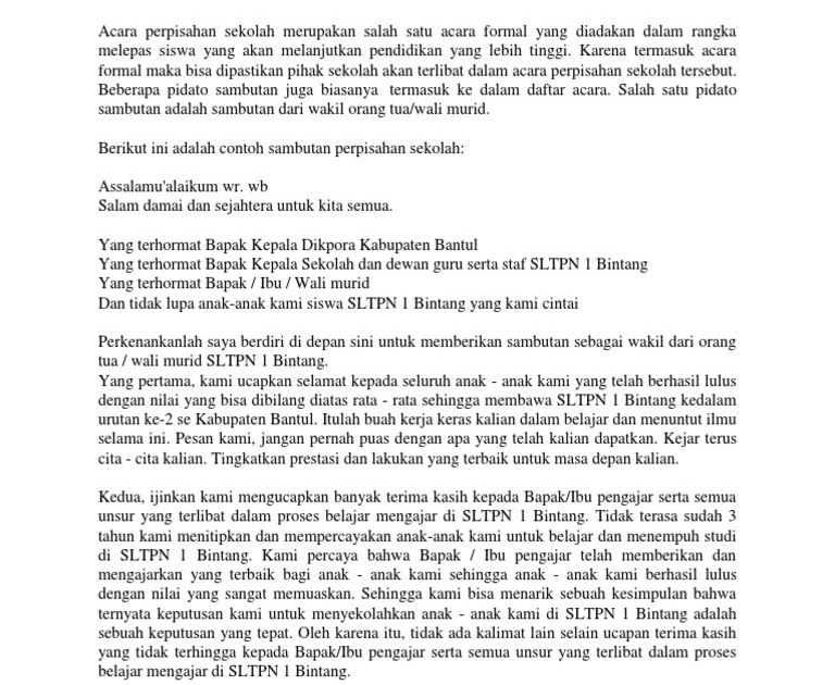 Contoh Teks Sambutan Wali Murid Acara Perpisahan Terbaik – Limongenc.com
