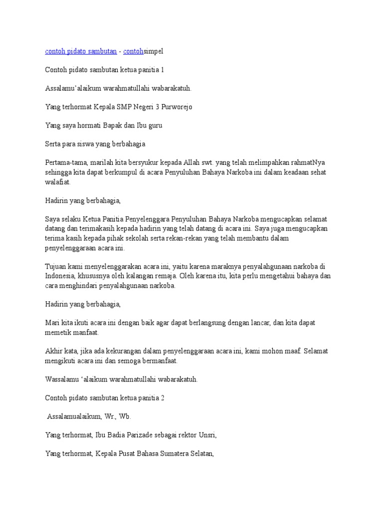 Contoh Naskah Teks Pidato Kata Sambutan Ketua Panitia Singkat – tipstriksib