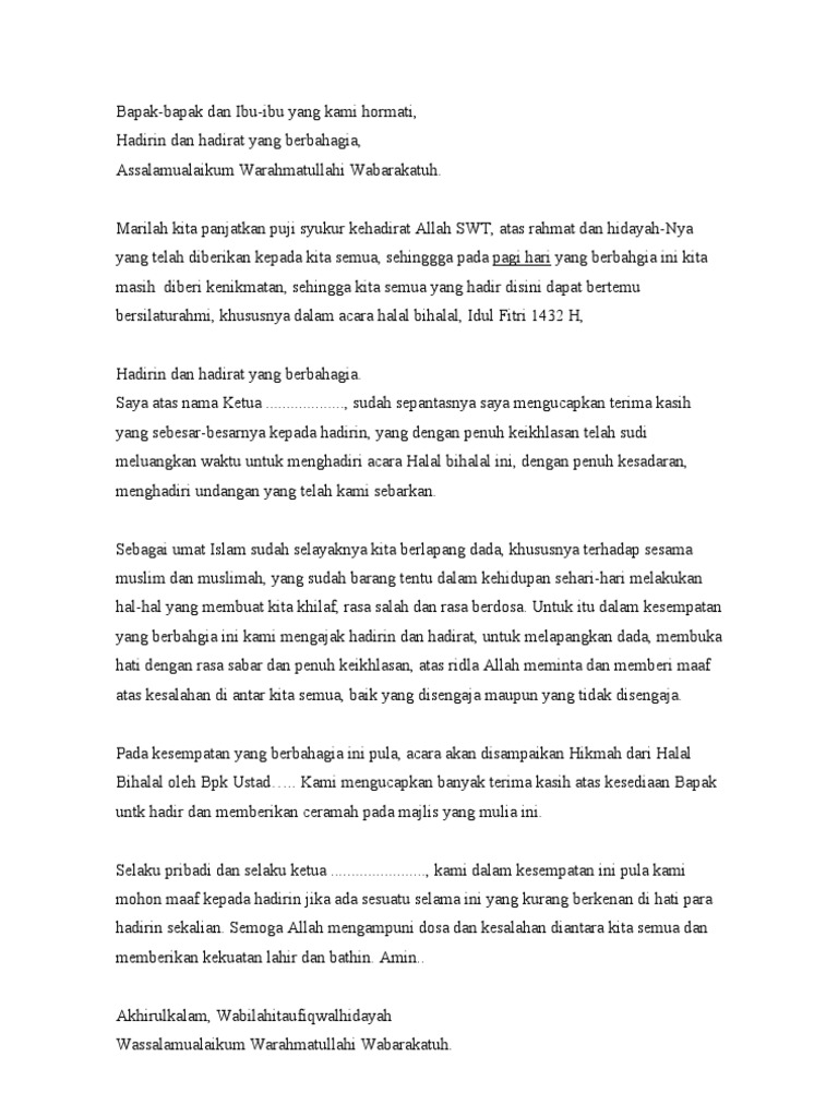 Web Berikut adalah kumpulan contoh kata sambutan halal bihalal yang bisa kamu gunakan saat lebaran nanti. Portal Kudus Inilah contoh teks ikrar halal bihalal Bahasa Jawa atau ikrar Syawalan 1442 H. Dan jika anda ditunjuk sebagai ketua panitia acara halal bihalal dan.