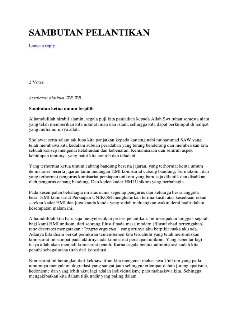 Dalam acara pelantikan tersebut Ketua OSIS baru yang. Web Download naskah teks contoh kata sambutan Ketua PPS dalam Pelantikan Pantarlih Pemilu 2024 contoh sambutan acara Pelantikan singkat padat. Web Pelantikan ini juga biasanya digelar dengan persiapan dan diurus oleh panitia.