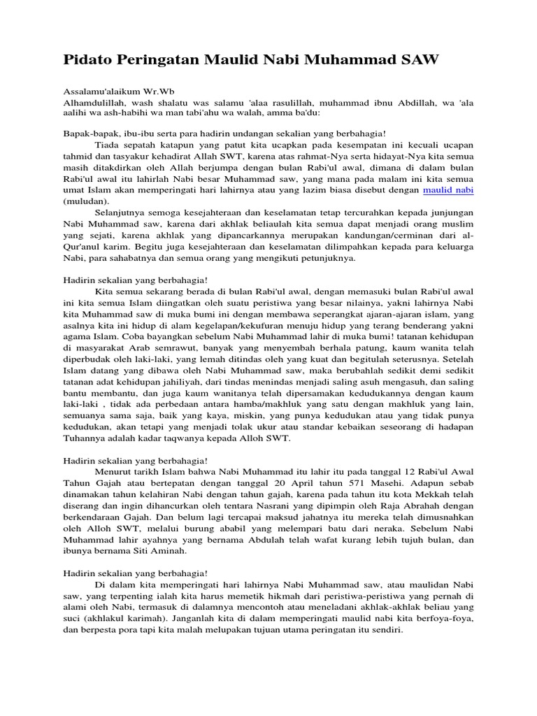 File berformat Microsoft Word Documents DOCRTF. Tahun ini maulid Nabi Muhammad SAW bertepatan. Web 10 Pidato Maulid Nabi Muhammad SAW Terbaru.