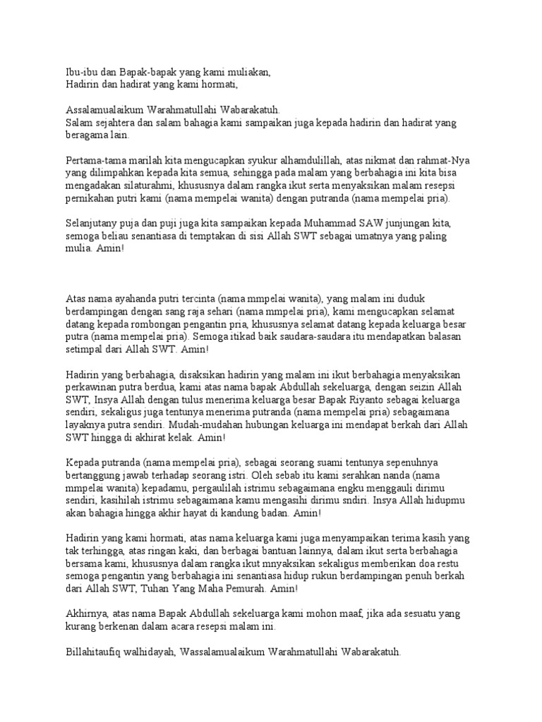 Contoh Format Sambutan Penyerahan Dan Penerimaan Calon Mempelai Pria | PDF