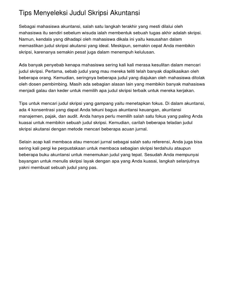 Namun kadang kala masih banyak. Judul merupakan hal pertama yang perlu disiapkan dalam menuliskan skripsi para mahasiswa tingkat akhir. Berikut adalah daftar judul skripsi akuntansi yang mudah dipahami terbaru yaitu.