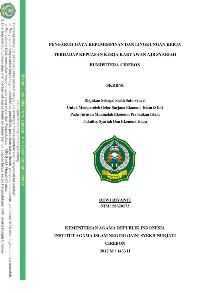 Contoh Skripsi Pengaruh Motivasi Dan Lingkungan Kerja Terhadap Kinerja