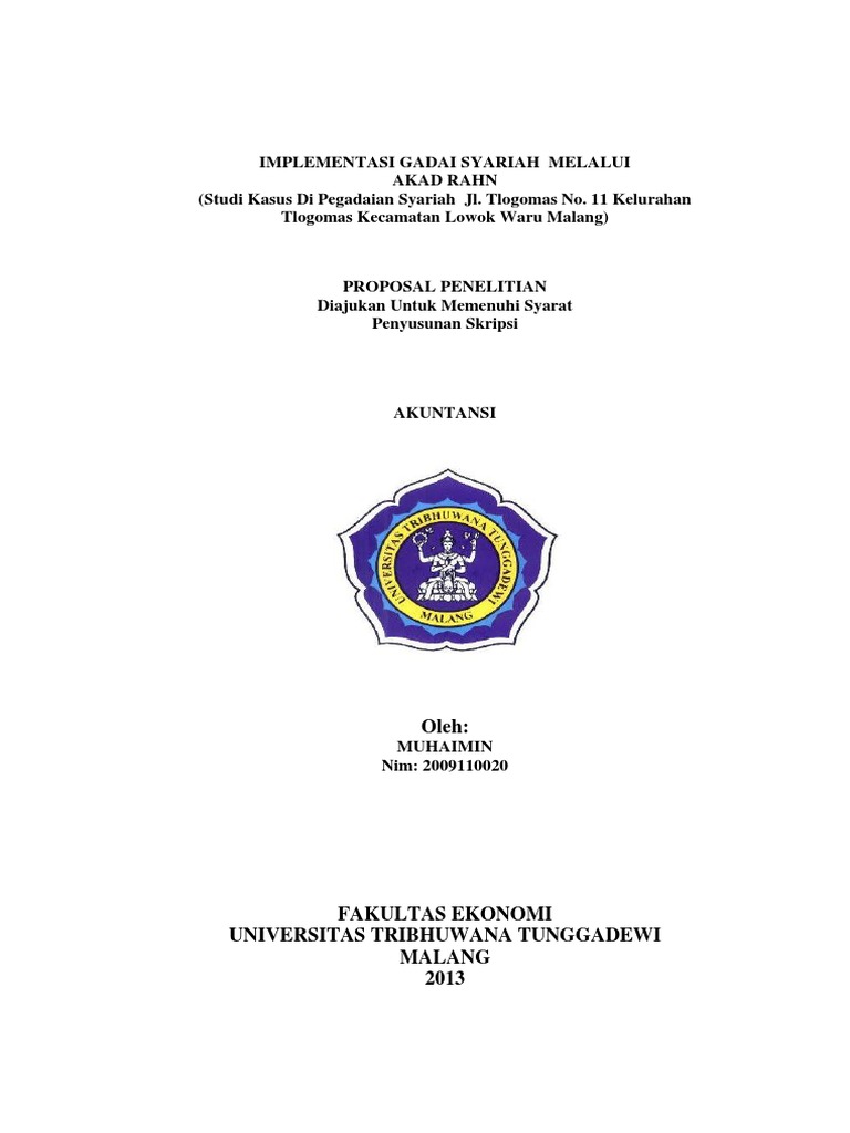Proposal Penelitian "Implementasi Gadai Syariah Melalui Akad Rahn"