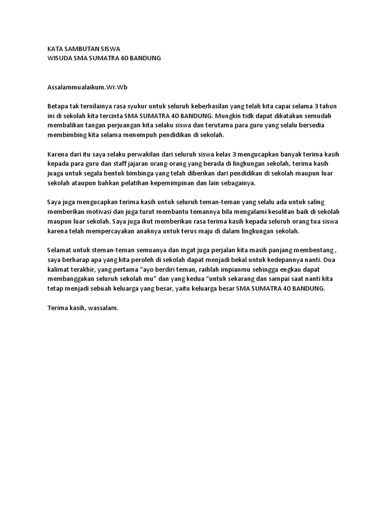 Pidato Sambutan Kepala Sekolah Dalam Acara Perpisahan | PDF