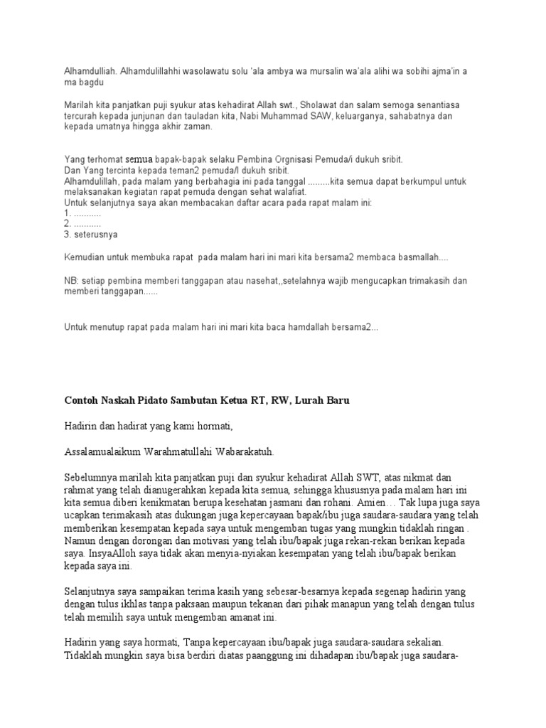 Contoh Kata Sambutan Ketua Rt Yang Baik Dan Benar – Kumpulan Contoh