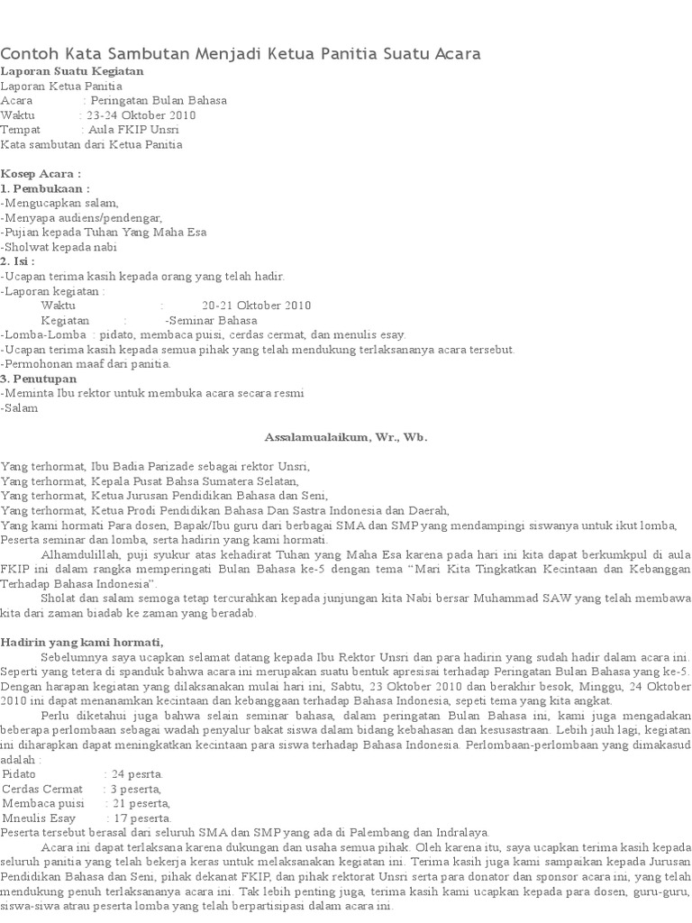 Kata Sambutan Dari Ketua Panitia | berita terbaru hari ini