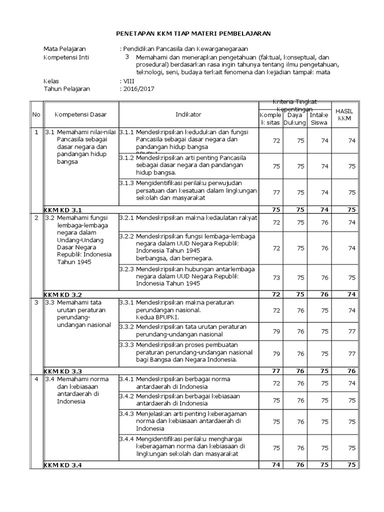 Contoh Format Kkm Kurikulum 2013 – Set kantor