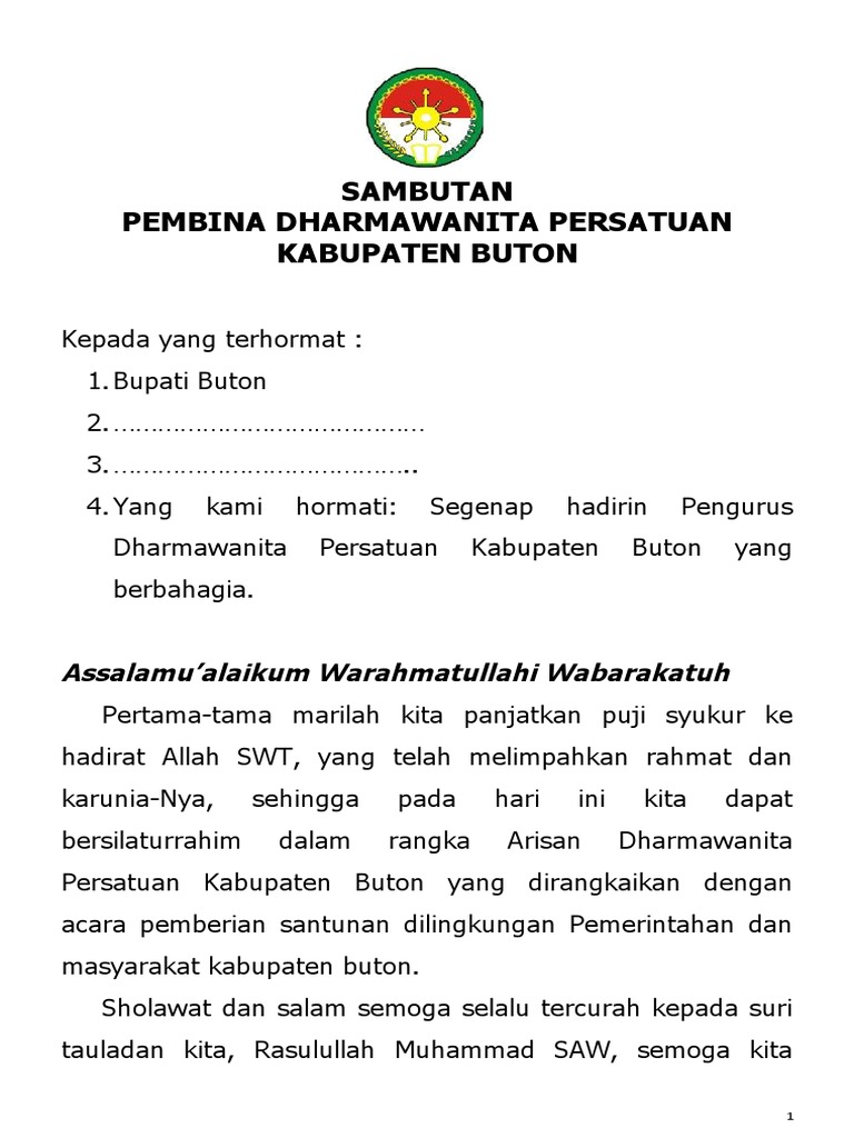 Contoh Sambutan Ketua Dharma Wanita Pdf