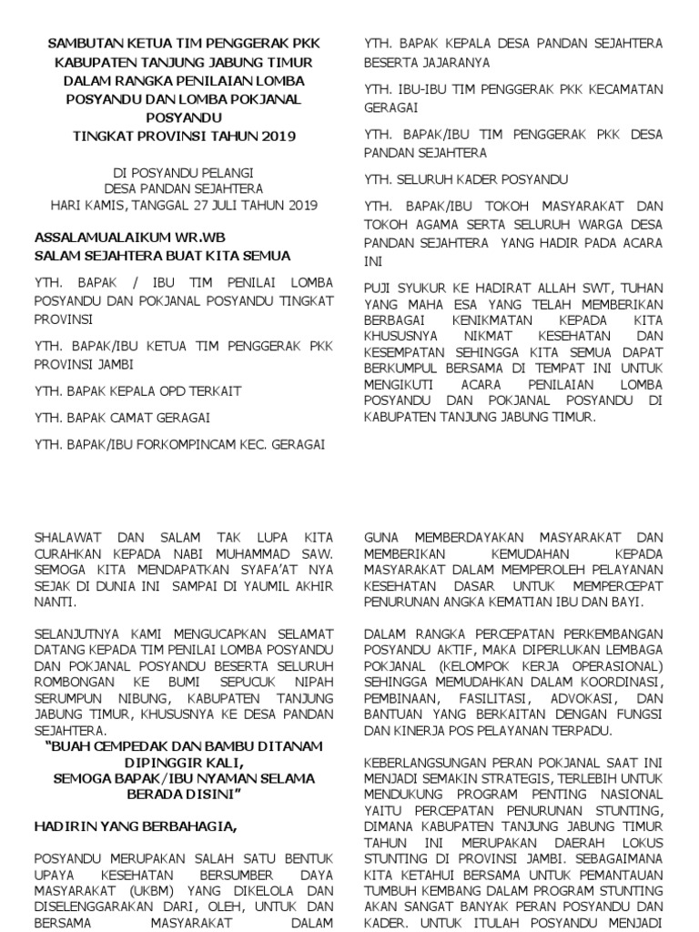Sambutan Edit Ketua Pkk Lomba Posyandu Pdf