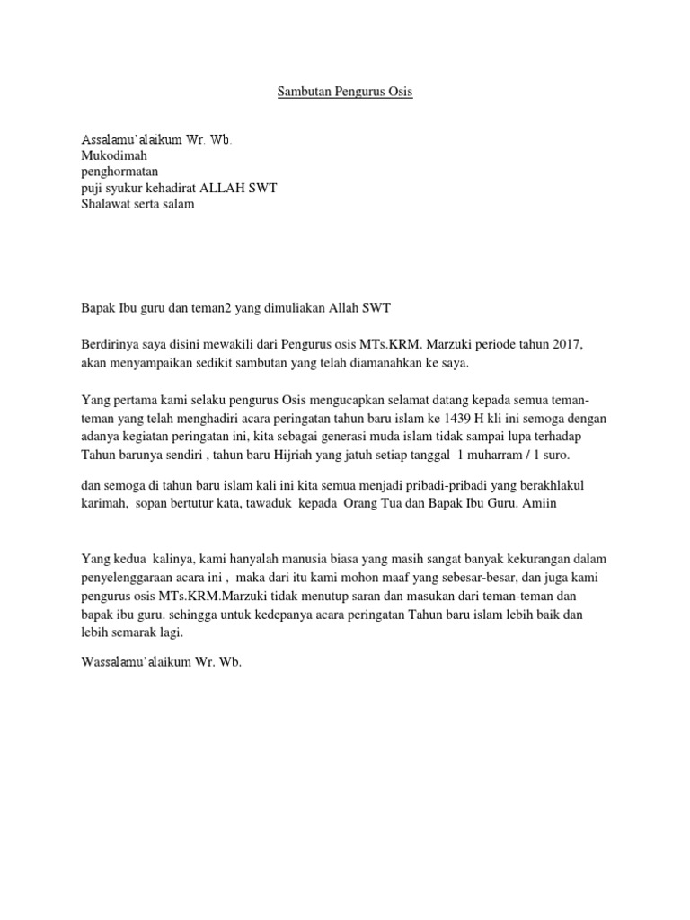 Contoh Sambutan Ketua Osis Yang Terbaik Tukaffe Com