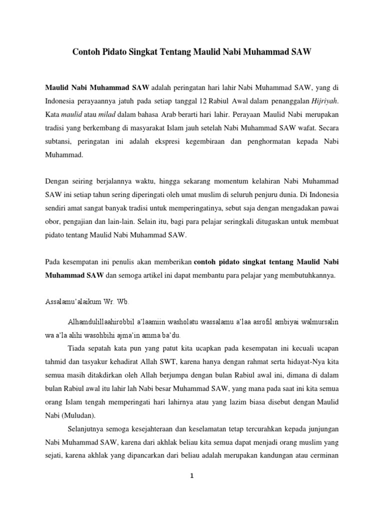 Contoh Pidato Singkat Tentang Maulid Nabi Muhammad Saw Pdf