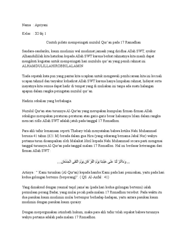 Contoh Pidato Peringatan Nuzulul Qur An Jago Berpidato Apa Yang Kamu Cari Ada Disini