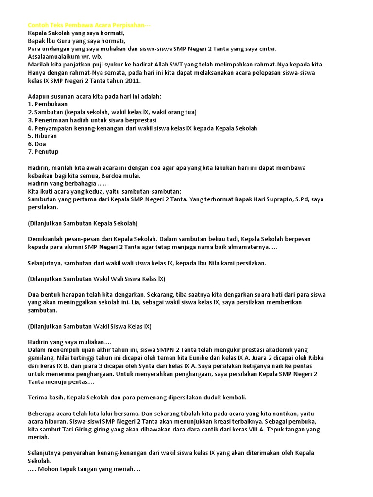 Contoh Teks Pembawa Acara Perpisahan Sekolah Pdf