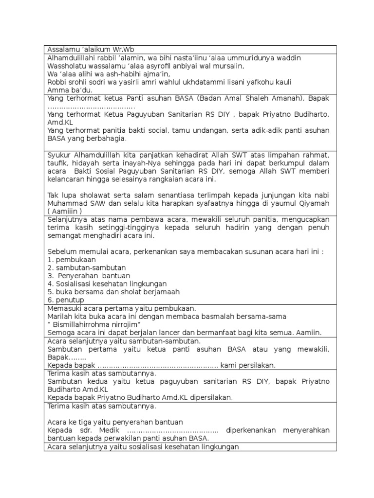 Contoh Kata Sambutan Acara Bakti Sosial Di Panti Asuhan. Teks Mc Baksos Kartar Odt. Wednesday June 30 2021.
