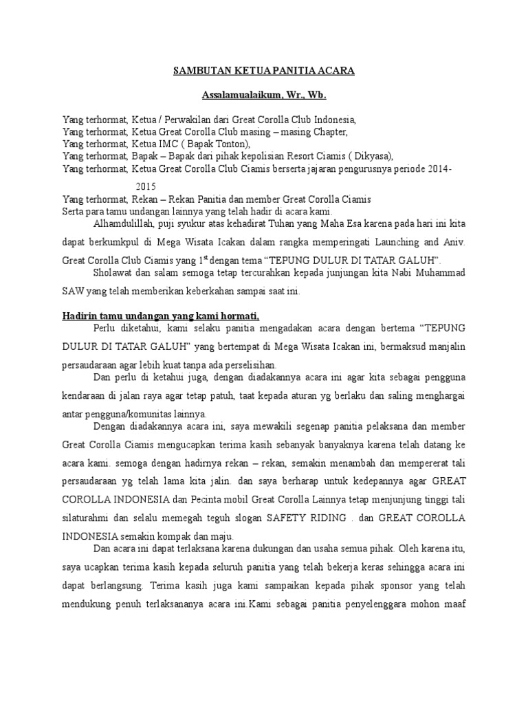Sambutan Ketua Panitia Acara Gcc Ciamis Pdf