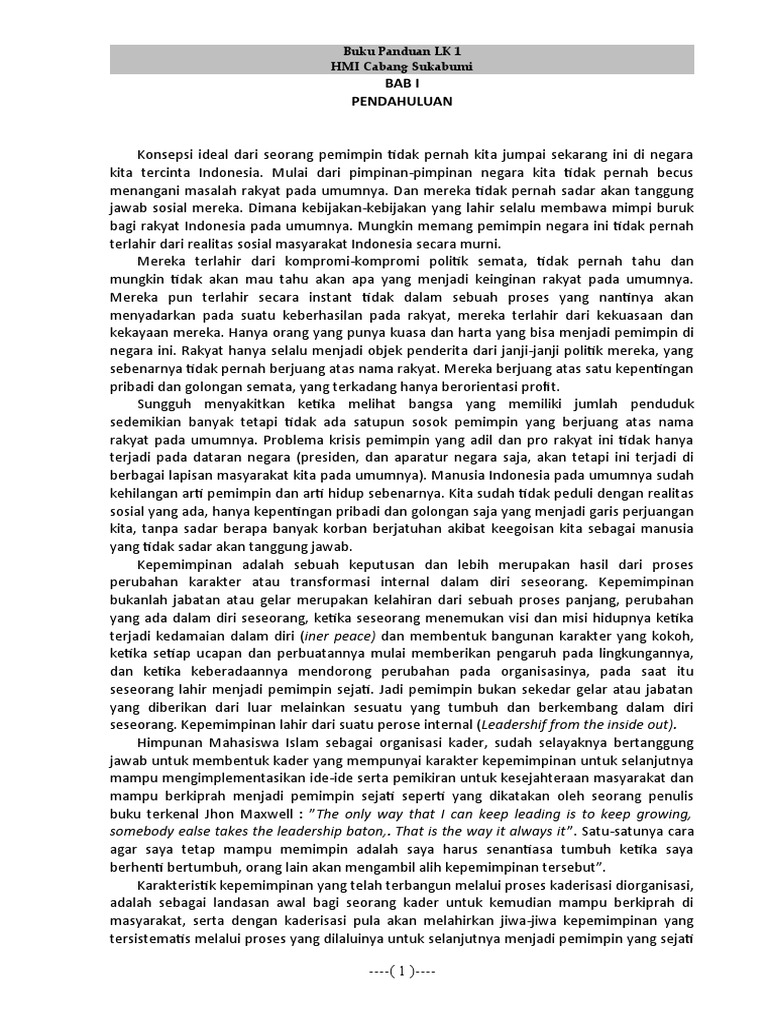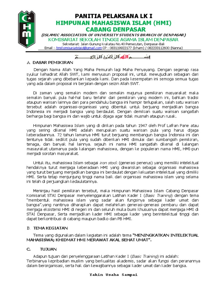 Laporan Kepanitiaan Latihan Kader 1 Hmi Hmi Pdf