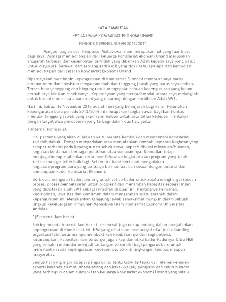 Contoh Kata Sambutan Ketua Panitia Lk 1 Hmi Tukaffe Com