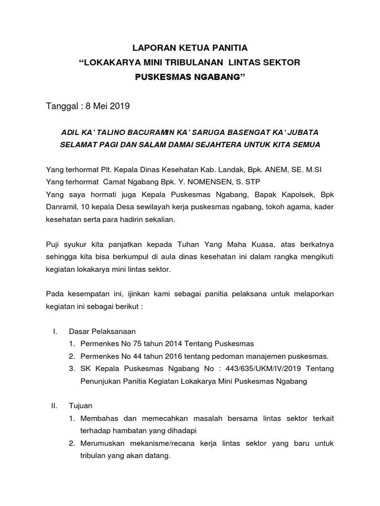 Laporan Ketua Panitia Lokakarya Mini Lintas Sektor Pdf