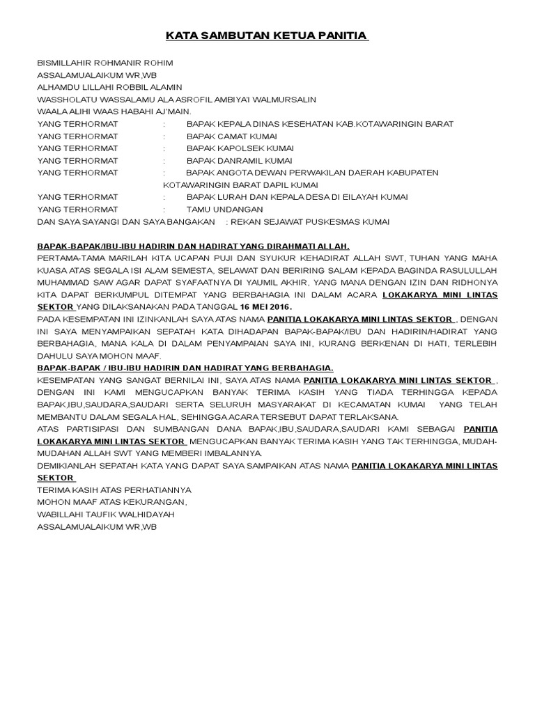 Doc Contoh Kata Sambutan Ketua Panitia Ari Bukhari Academia Edu
