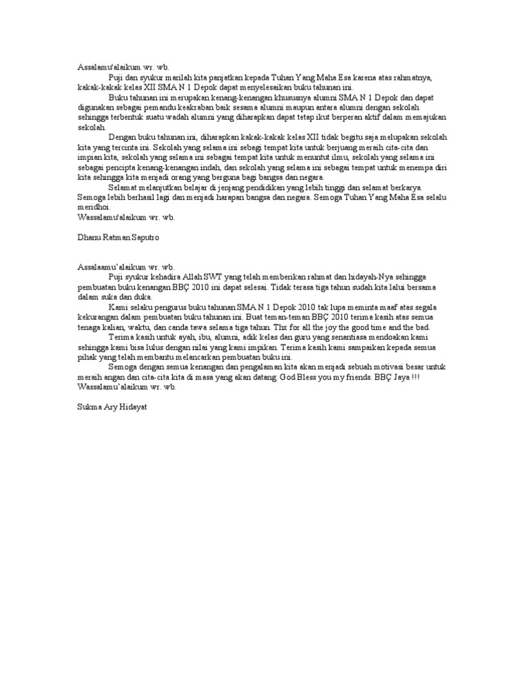 Contoh Contoh Kata Sambutan Ketua Panitia Buku Tahunan Sekolah Tukaffe Com