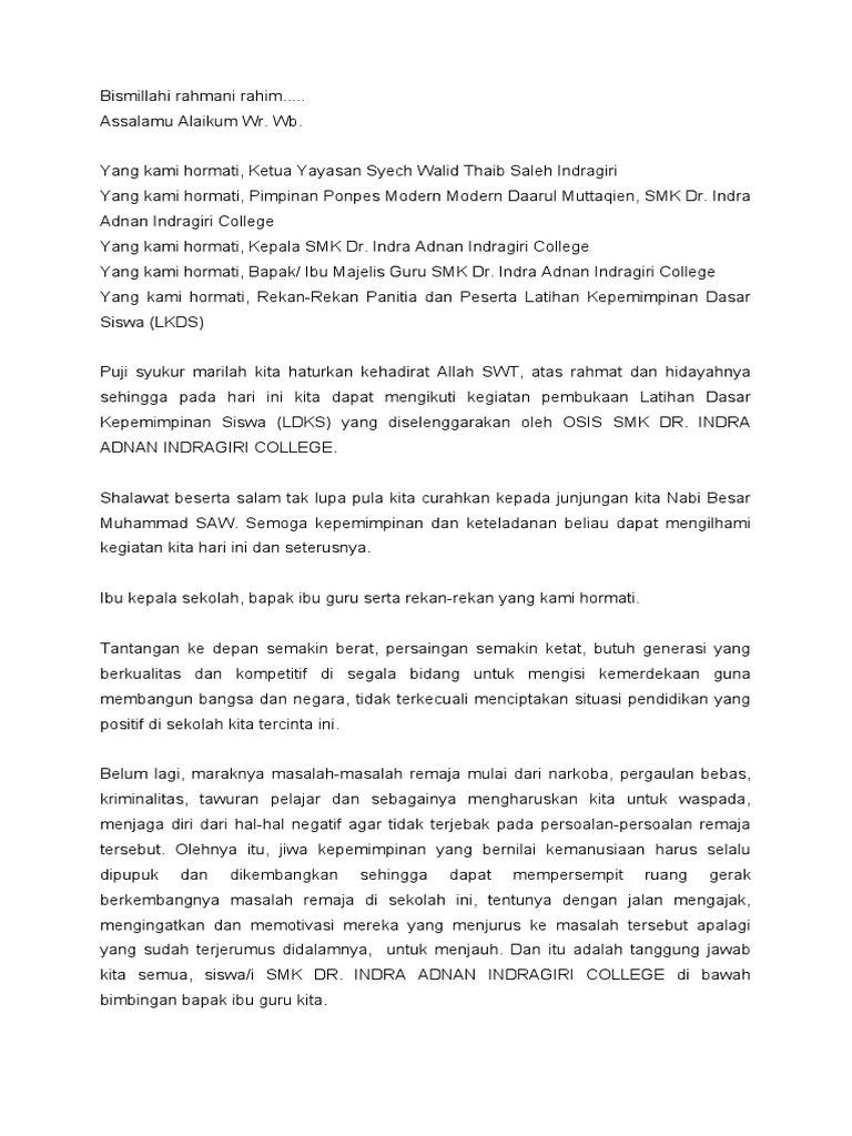 Contoh Kata Sambutan Ketua Panitia Latihan Dasar Kepemimpinan Tukaffe Com