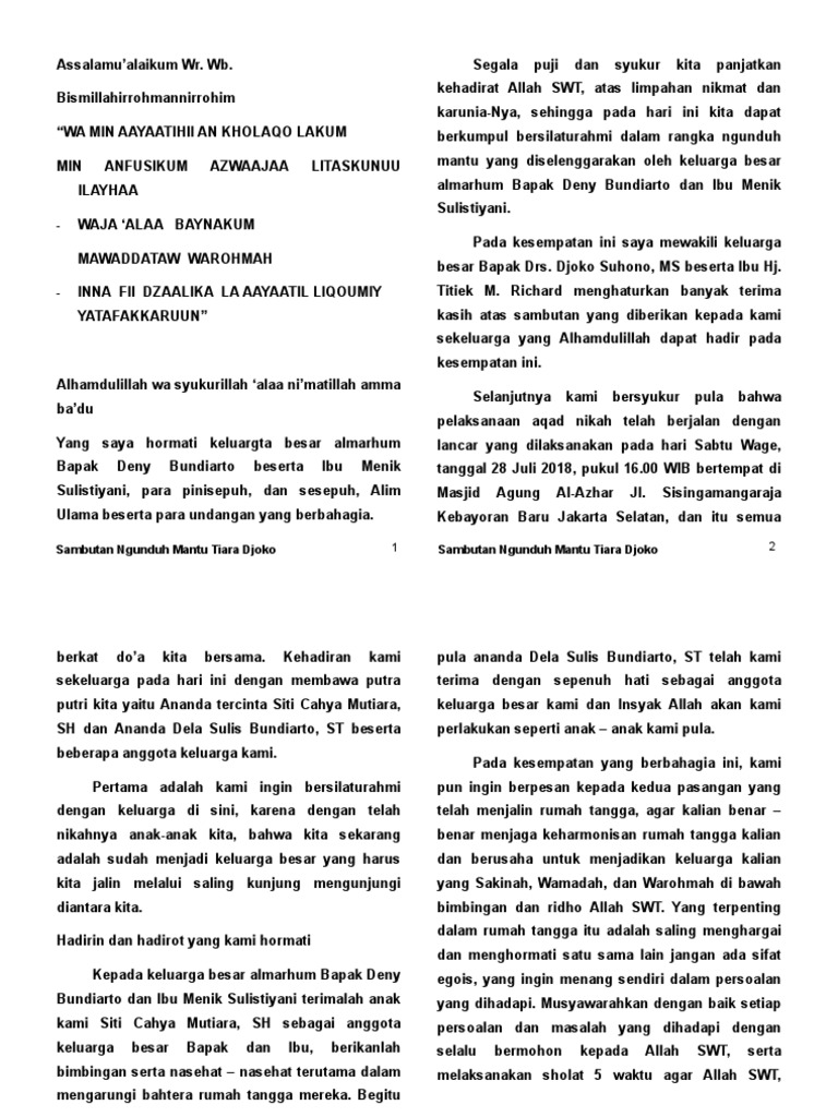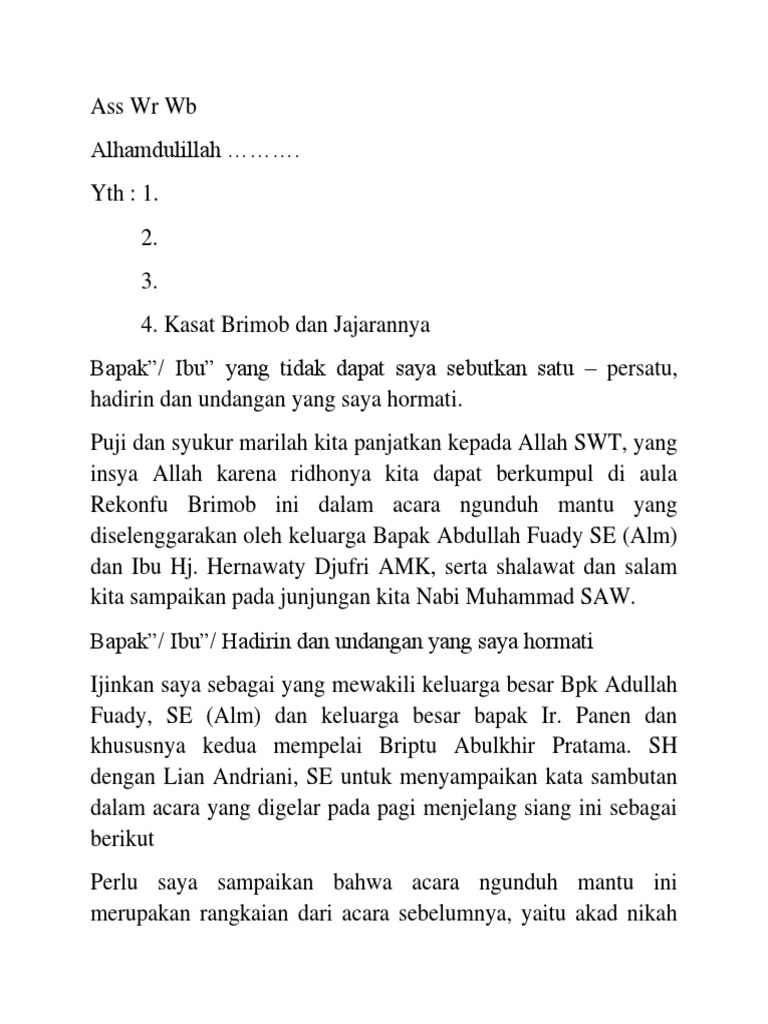 Minta bantuan ane tentang. Alhamdulillahirabbil alamin Wassolatu wassalamu. Bapak-bapak serta para hadirin undangan sekalian yang berbahagia Hadirin sekalian yang berbahagai Perkenankanlah kami berdiri dimuka para hadirin sekalian ini adalah mewakili dari.
