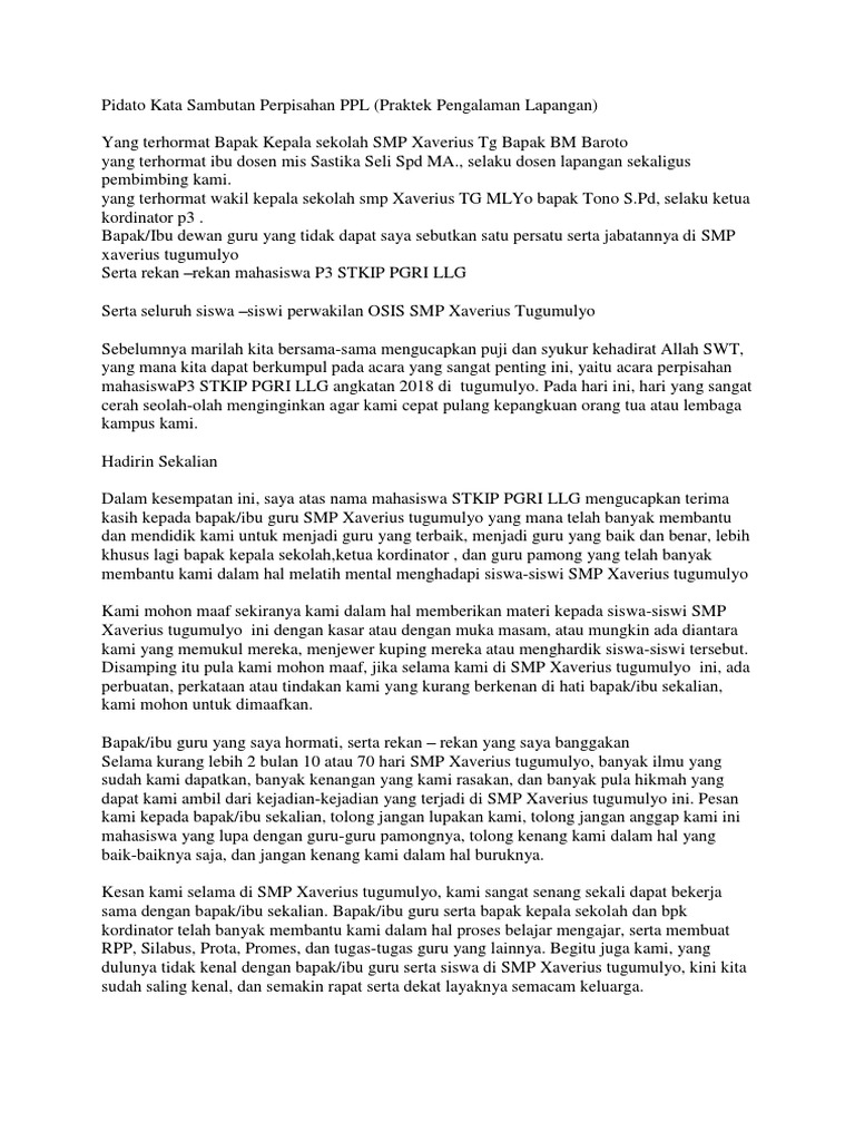 Pidato Kata Sambutan Perpisahan Ppl Pdf