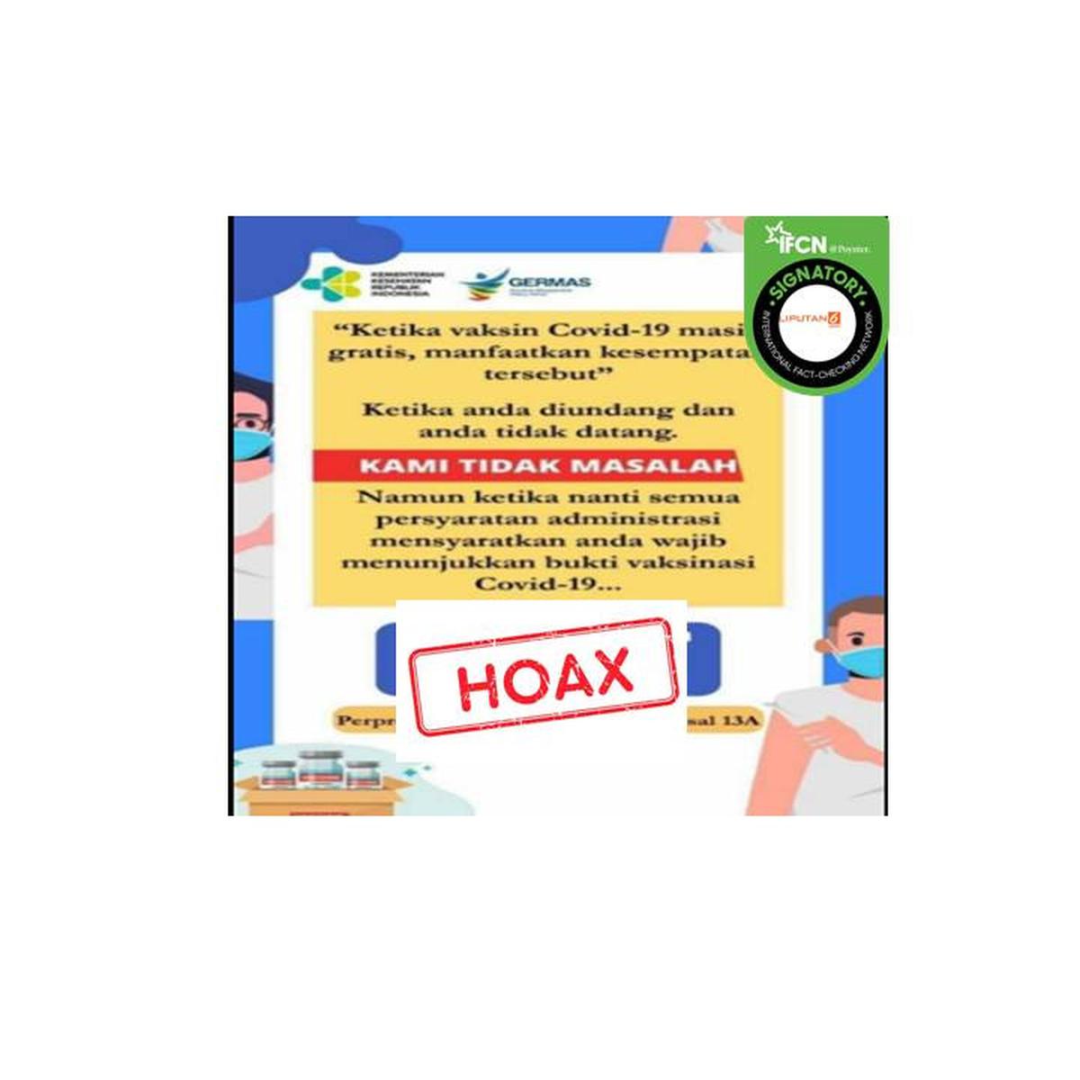 Cek Fakta Tidak Benar Bukti Vaksinasi Covid 19 Sebagai Persyaratan Administrasi Cek Fakta Liputan6 Com