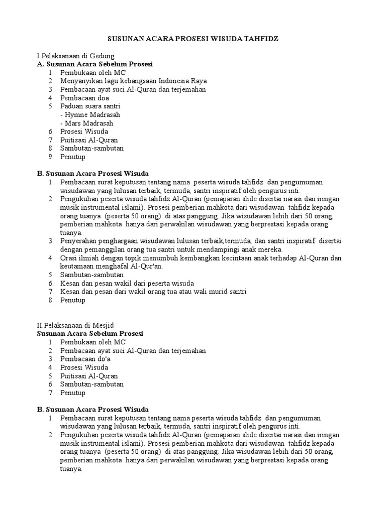 Susunan Acara Prosesi Wisuda Tahfidz Pdf