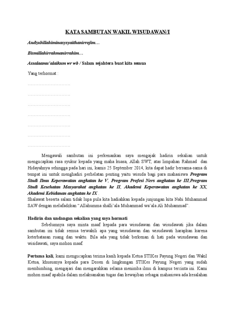 Kata Sambutan Wakil Wisudawan 20014 Pdf