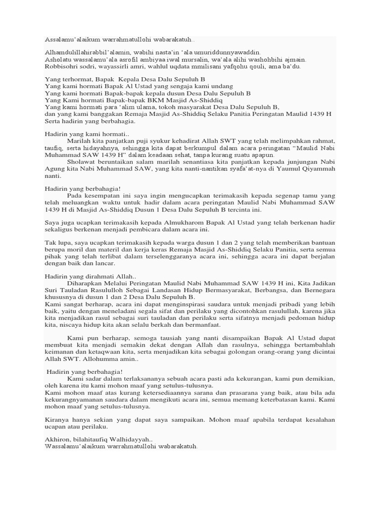Contoh kata sambutan yang baik dalam pengajian diawali dengan doa terlebih dahulu. Assalaamualaikum warahmatullaahi wabarakaatuh Dan tolong-menolonglah kamu dalam mengerjakan kebajikan dan takwa dan. Contoh teks ucapan majlis makan malam dan format ringkas.