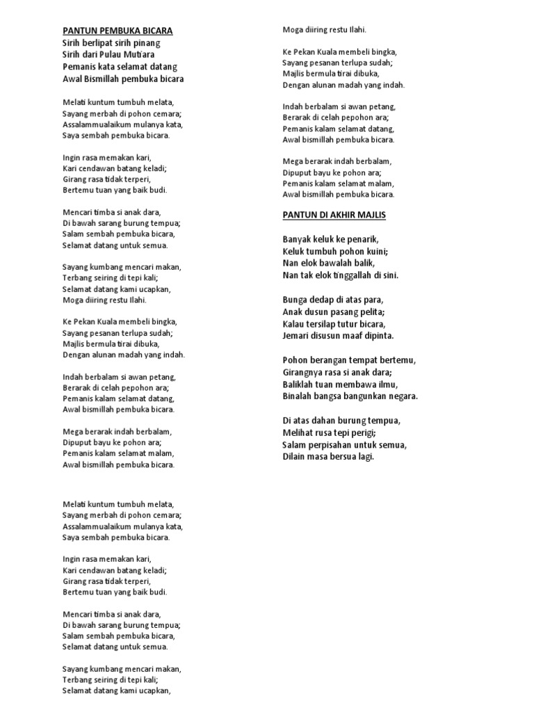 PANTUN PEMBUKA BICARA dan PENUTUP MAJLIS