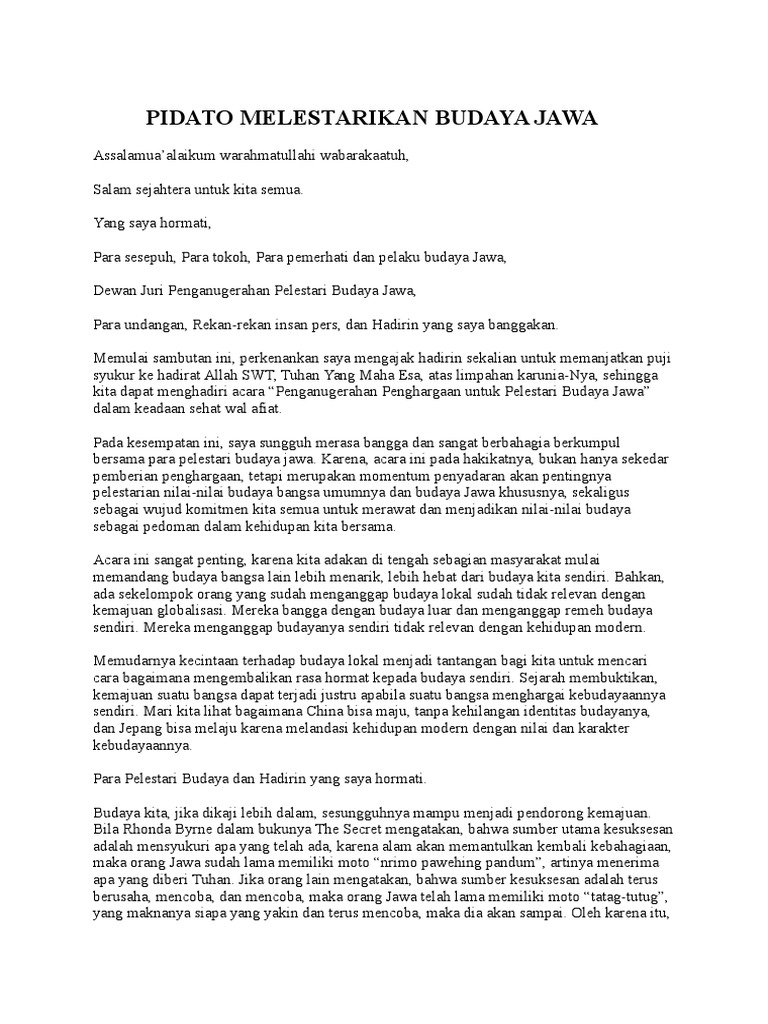 Contoh Naskah Pidato Bahasa Jawa Tentang Kebudayaan – Berbagai Naskah