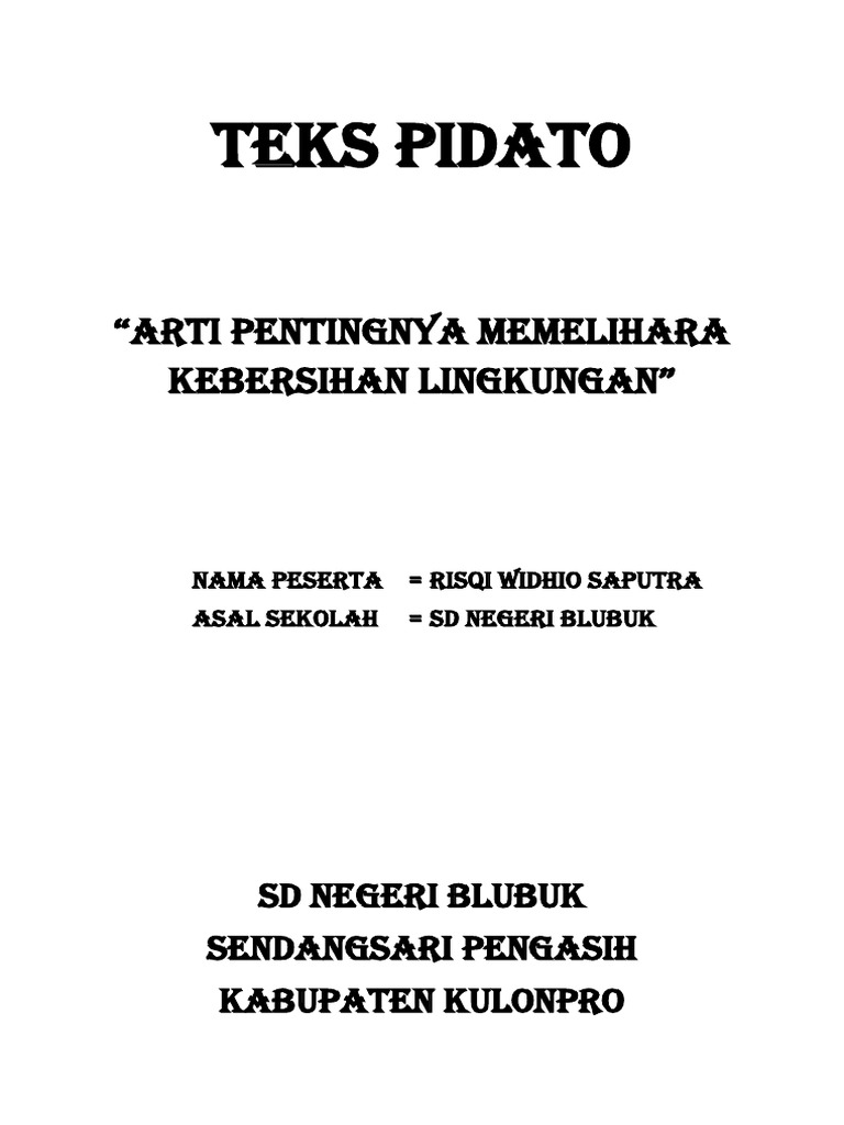 Kebersihan lingkungan adalah hal yang. Web Isi dalam pidato haruslah menyatakan suatu peristiwa yang nyata tanpa direkayasa. Web WbPembukaan Pidato Tentang Kebersihan Lingkungan.