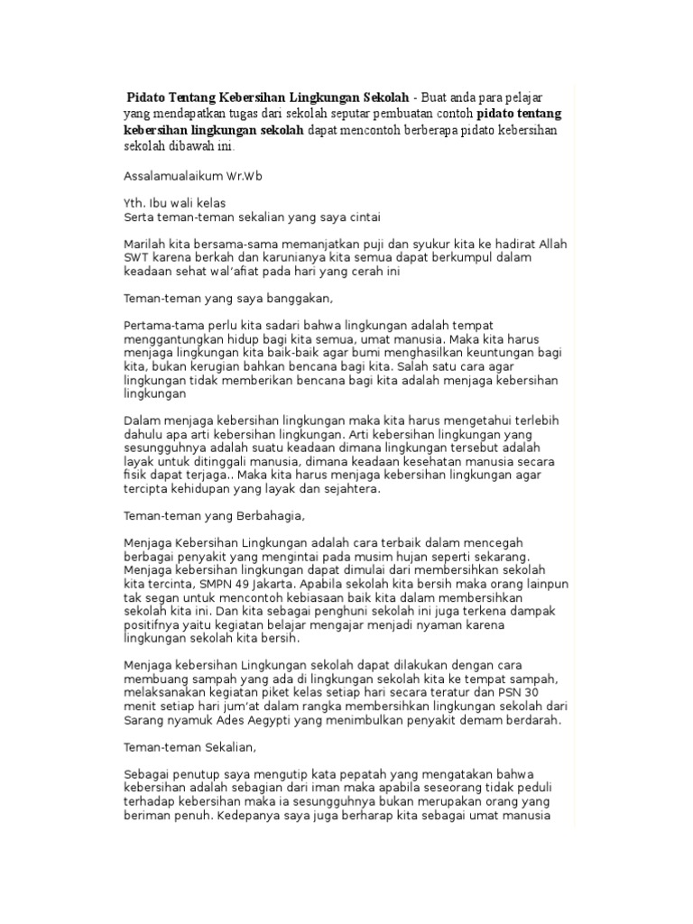 This is actually a write-up or even photo around the Contoh Pidato Persuasif Tentang Kebersihan. Web Adapun Contoh Pidato Tentang Kebersihan Lingkungan Sekolah adalah sebagai berikut. Web Naskah Pidato Tentang Menjaga Kebersihan Lingkungan Sekolah ini semoga bermanfaat bagi yang saat ini mencari contoh pidato singkat terutama untuk adik adik.