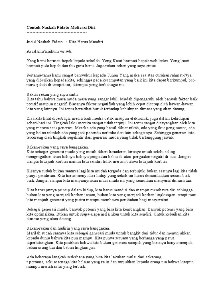 Langsung saja inilah contoh pidato. Bapak-bapak Ibu-ibu saha sadherek-sadherek kaum musli. Web Berikut isi naskah pidato sambutan malam nuzul quran.