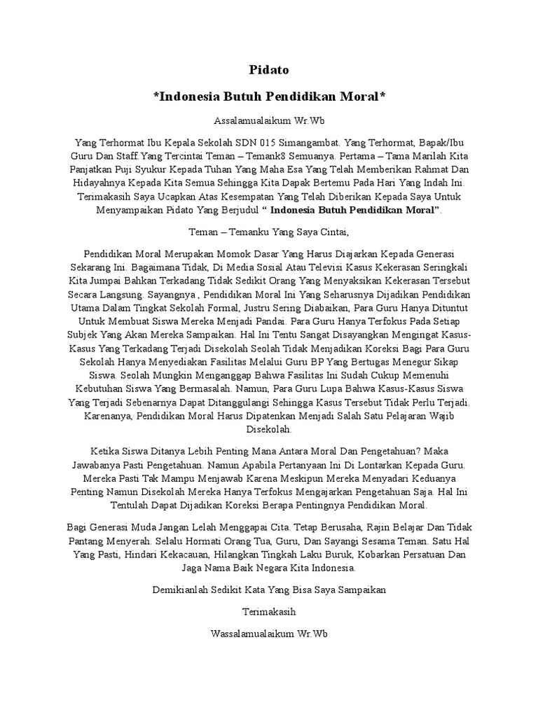 View Contoh Pidato Tentang Pendidikan Karakter Remaja Background | Hutomo