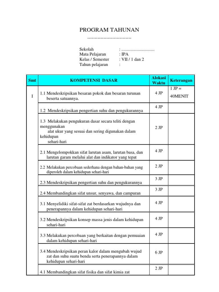 Prota Dan Promes Ipa Smp Kelas 7 Kurikulum 2013 | Bagikan Kelas