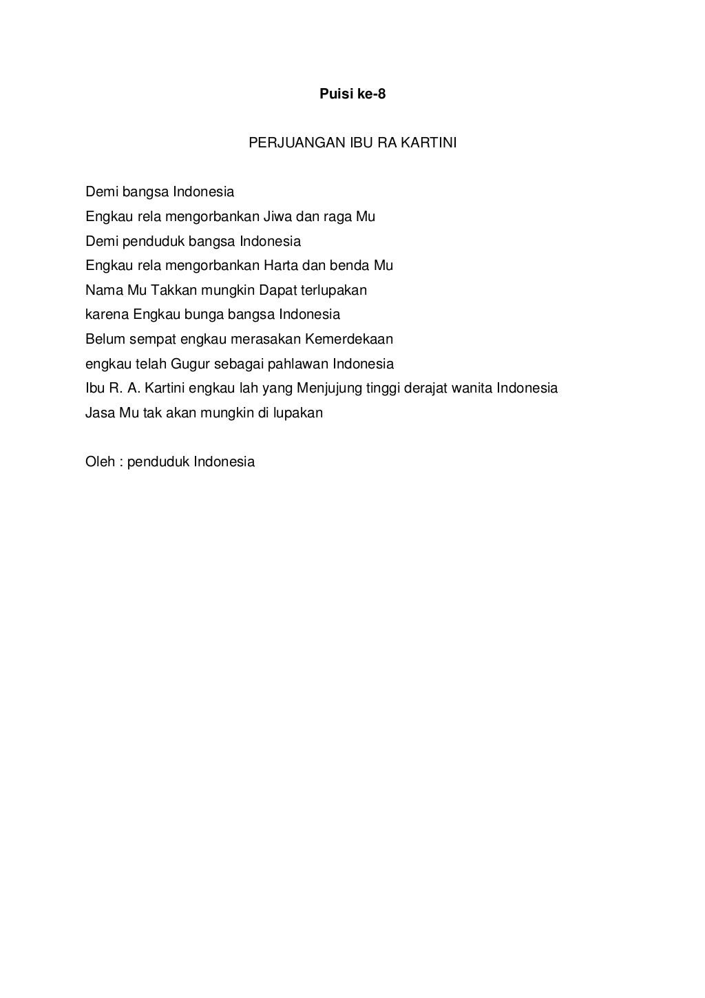 Engkau memang sangat berani. Sudut pandang Lucia Priandarini S 35 tentang cara hidup berubah setelah mengikuti workshop zero waste yang disampaikan oleh DK Wardhani penulis buku Menuju. Berikut Puisi Kartini yang bisa jadi sumber inspirasi.