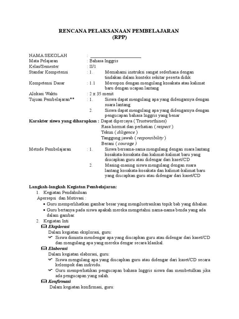 Rpp Bahasa Inggris Kelas 1 Semester 2