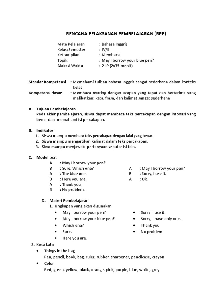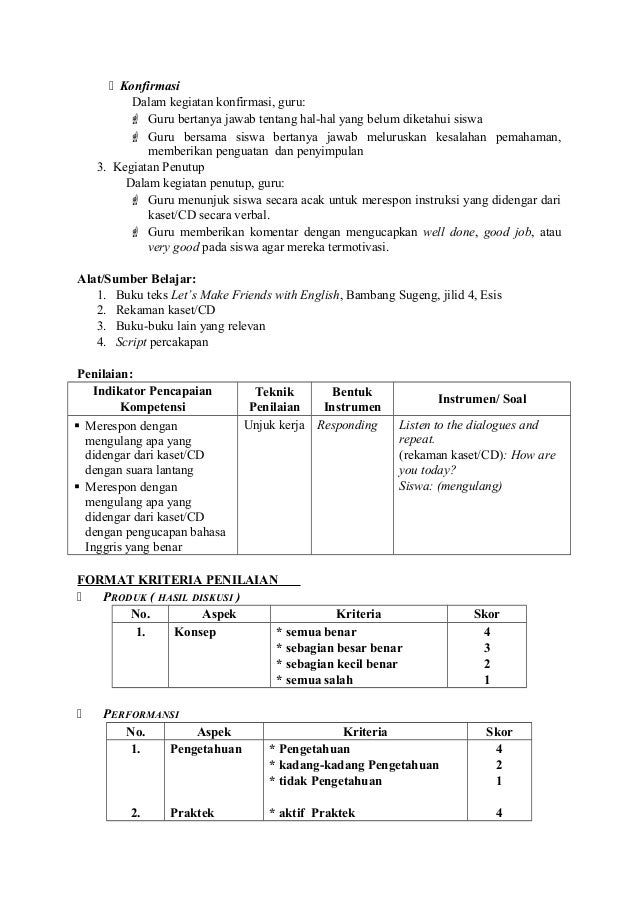 Rpp bahasa inggris untuk sd. 2 x 40 MENIT. RPP ini dapat digunakan. Greetings Sapaan Tujuan.